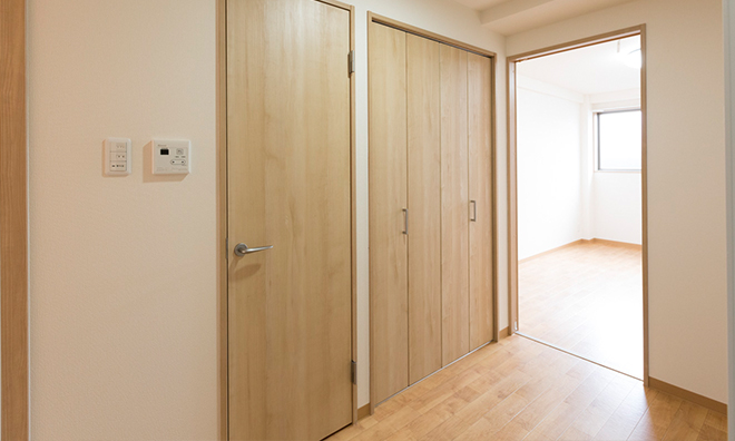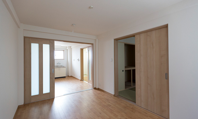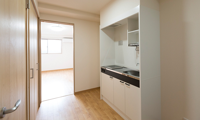 本社・豊中工場では、実家が遠方の独身者や、単身赴任者向けに個人用住宅(1K)をご用意しております。また原則として、ご家族でご入居頂ける家族用住宅(2DK)もご利用頂けます。